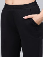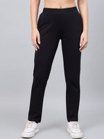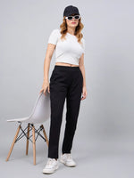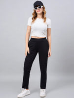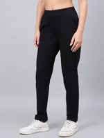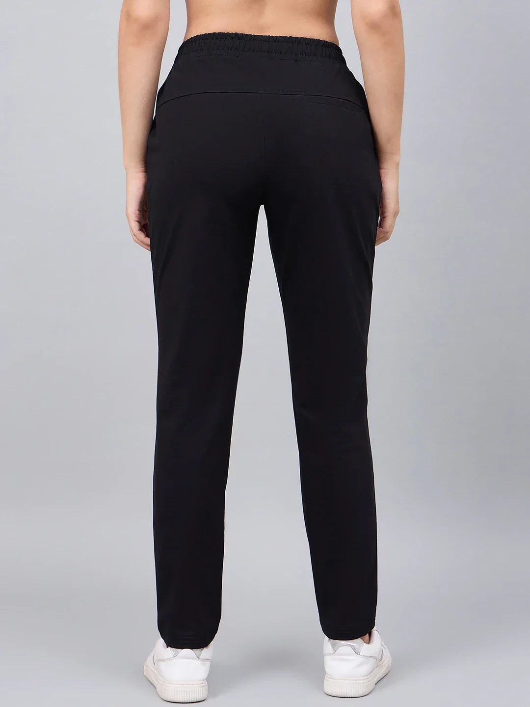Women’s Black Cotton Stretchable Slim Fit Trackpants – High Waist Straight Leg Workout & Casual Wear Bottoms India