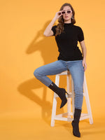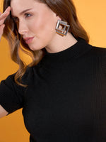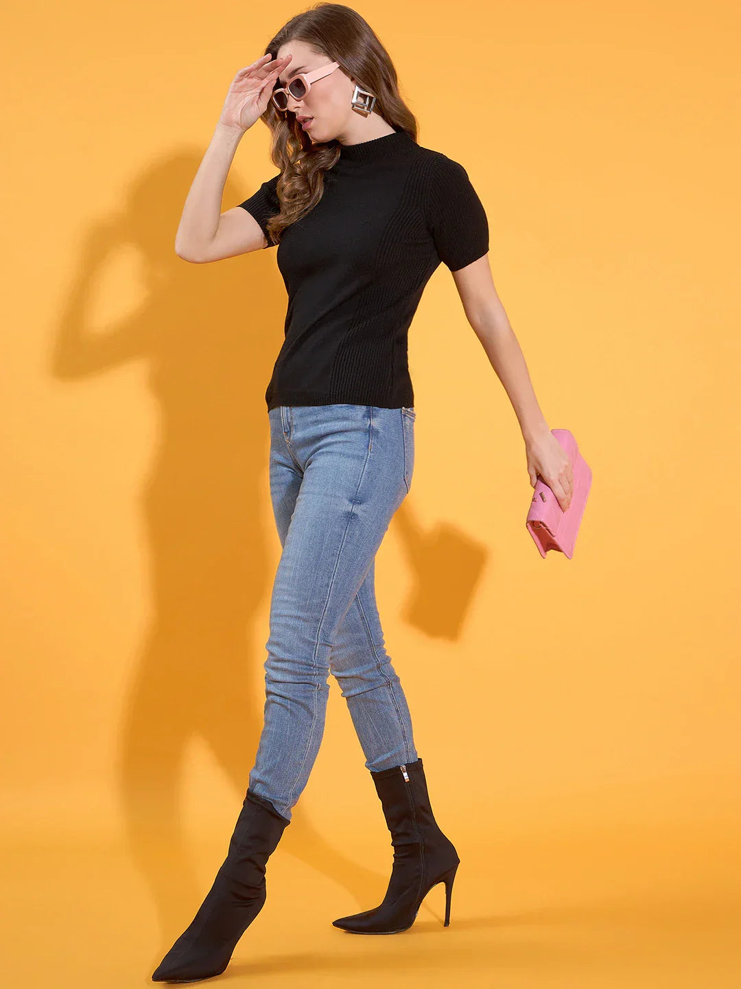 Women’s Black Stretchable Ribbed Turtle Neck Sweater – Slim Fit Half Sleeve Knit Top for Casual & Office Wear Winter Fashion India