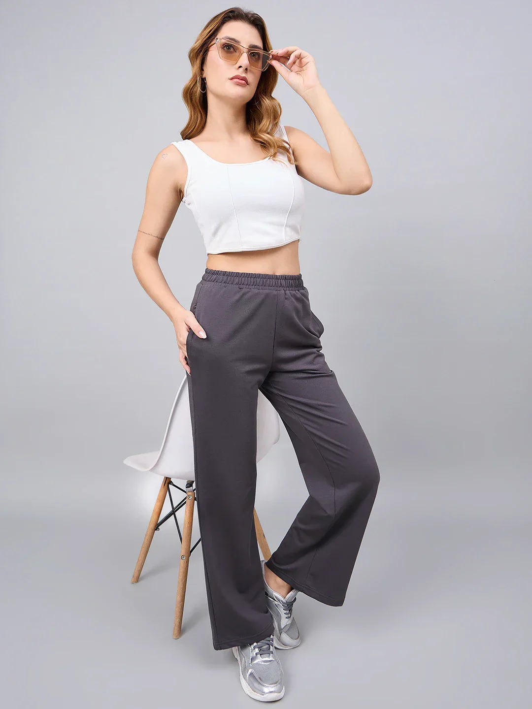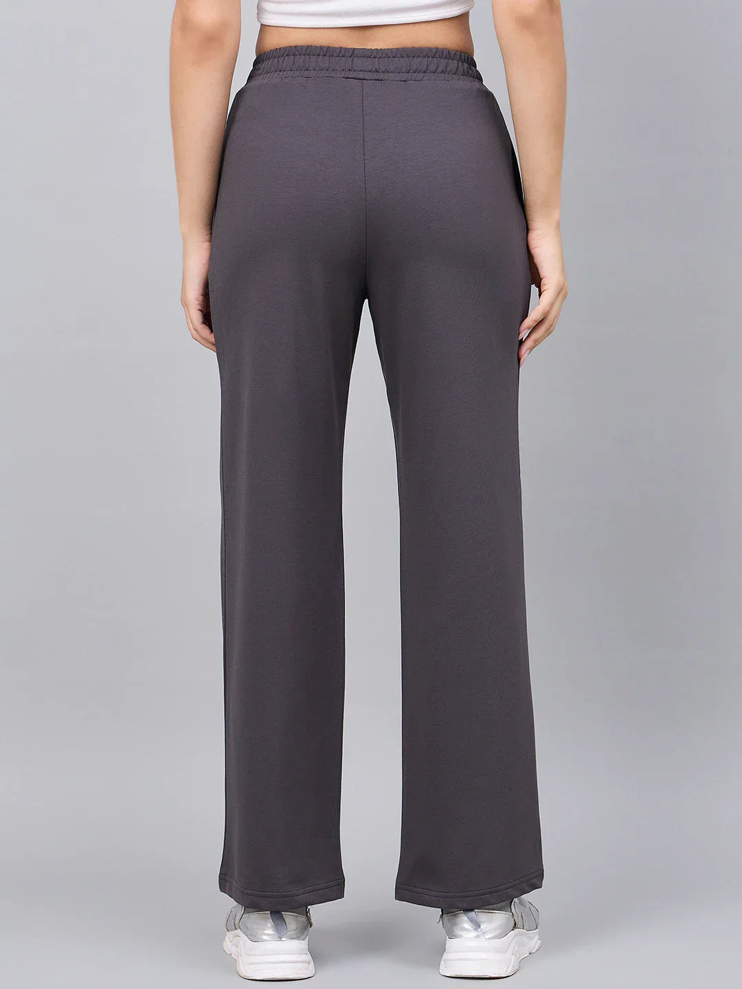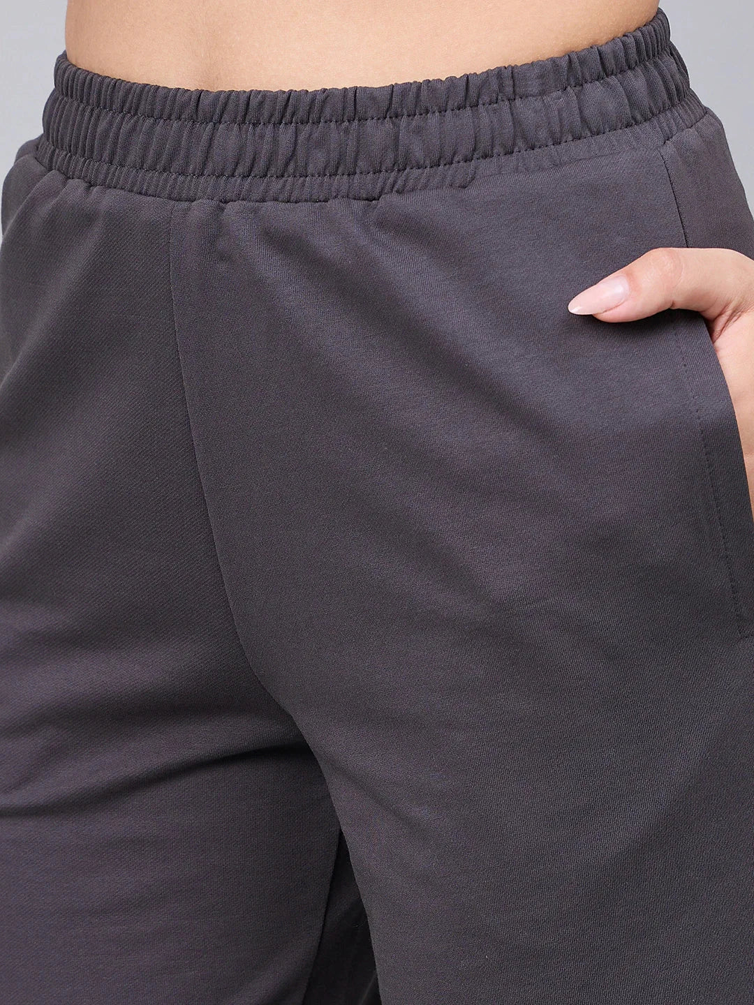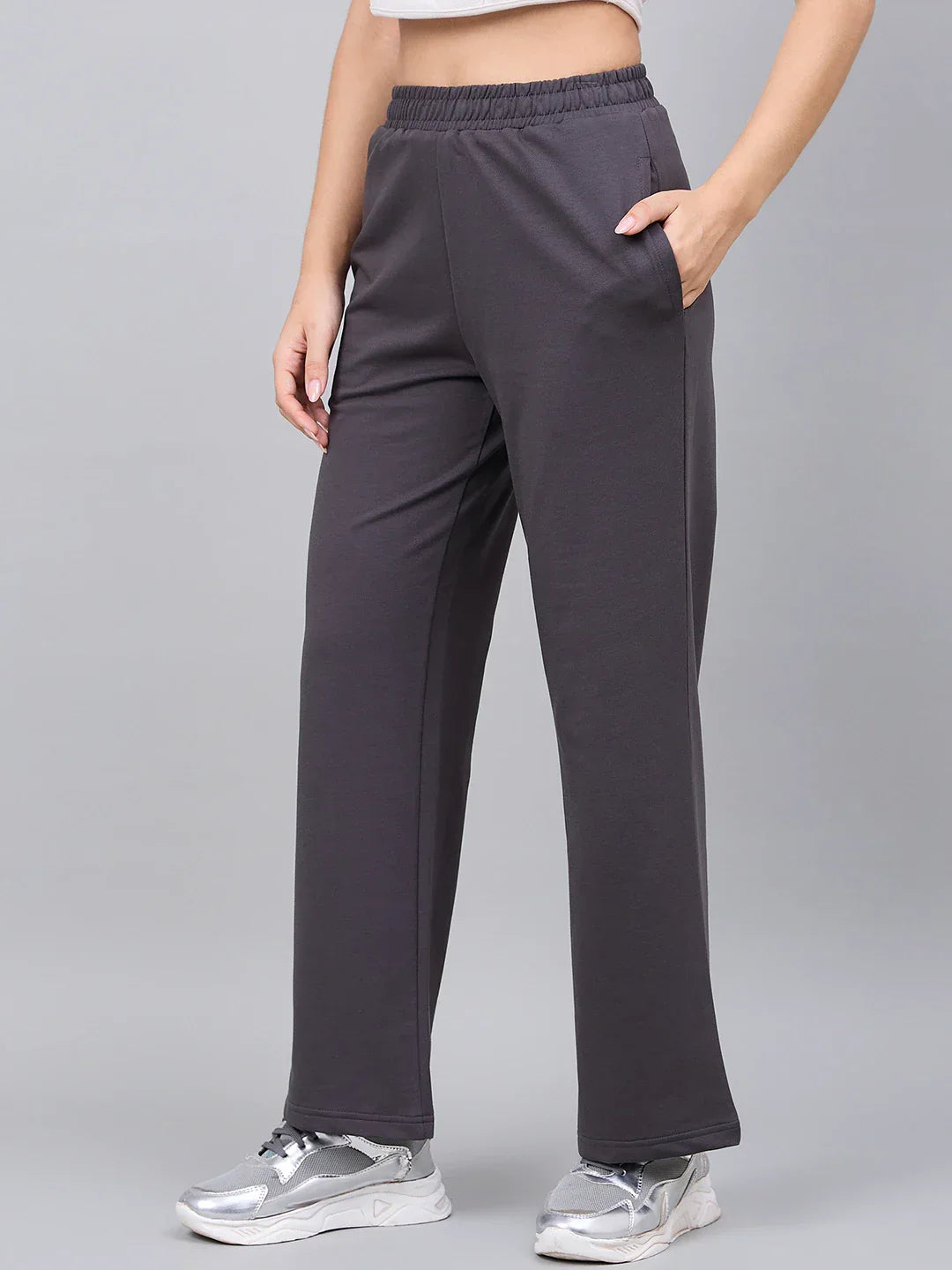 Women’s Charcoal Grey Cotton Stretchable Trackpants – Slim Fit High Waist Casual & Office Wear Pants India