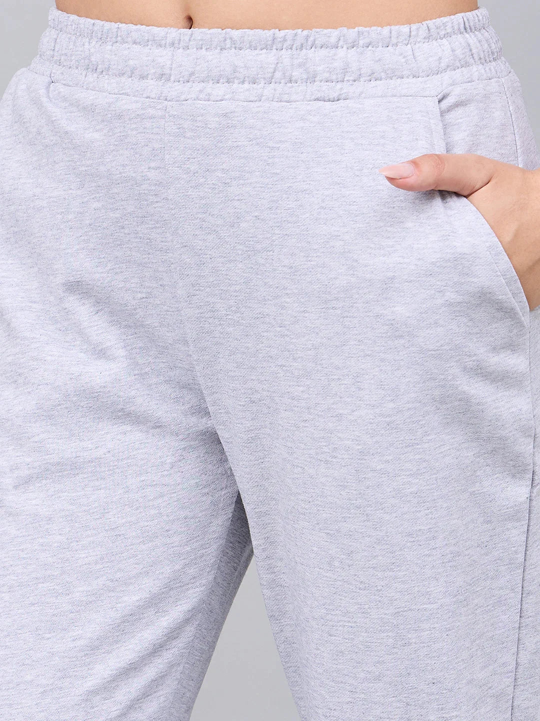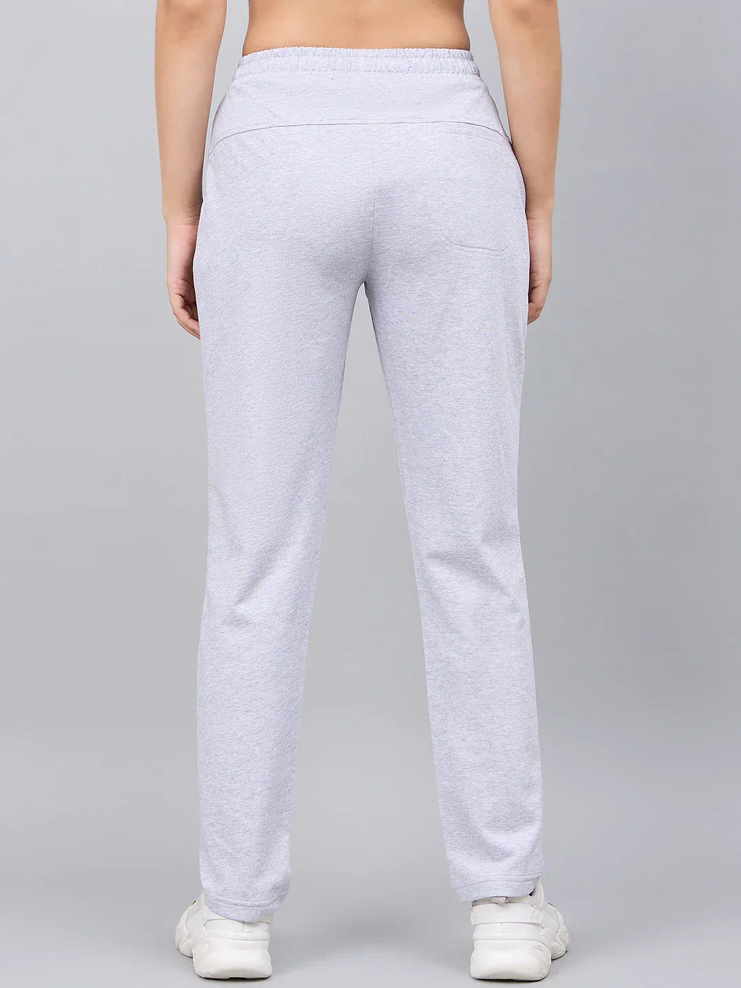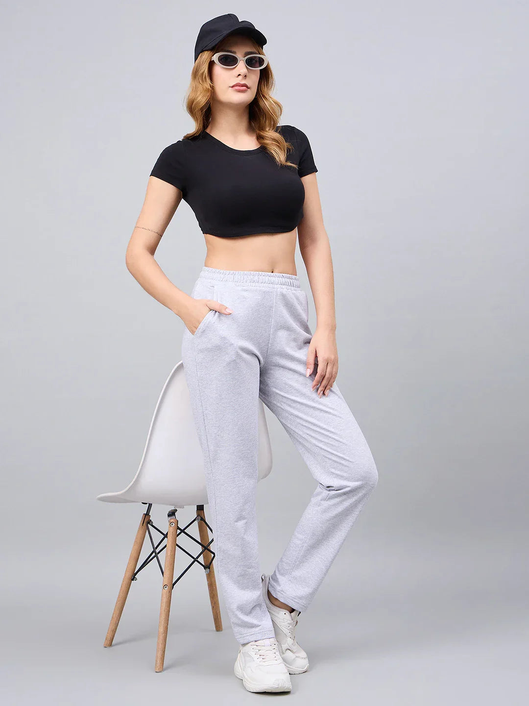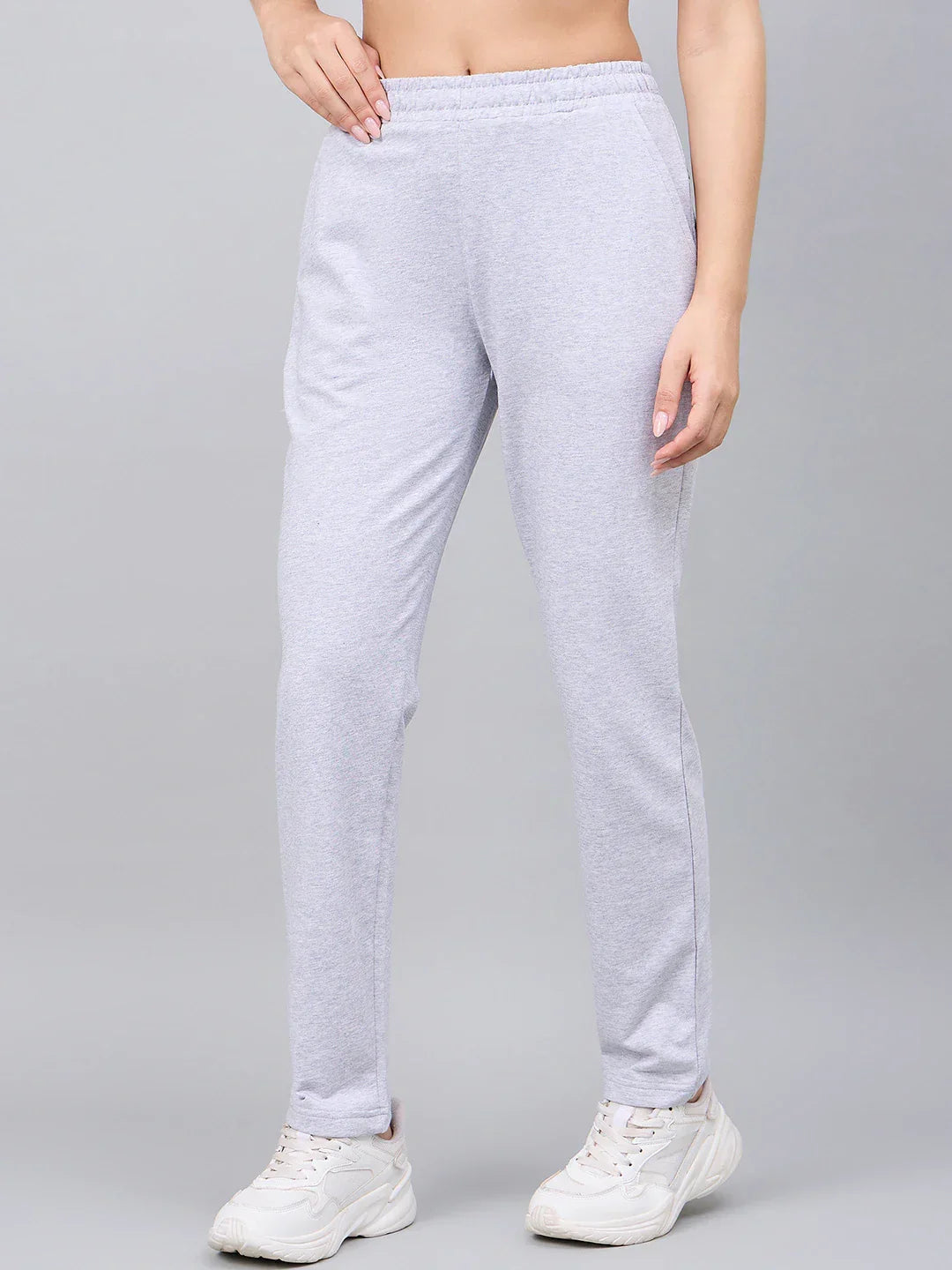 Women’s Light Grey Cotton Stretchable Slim Fit Trackpants – High Waist Straight Leg Casual & Athleisure Pants India