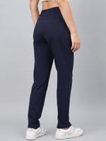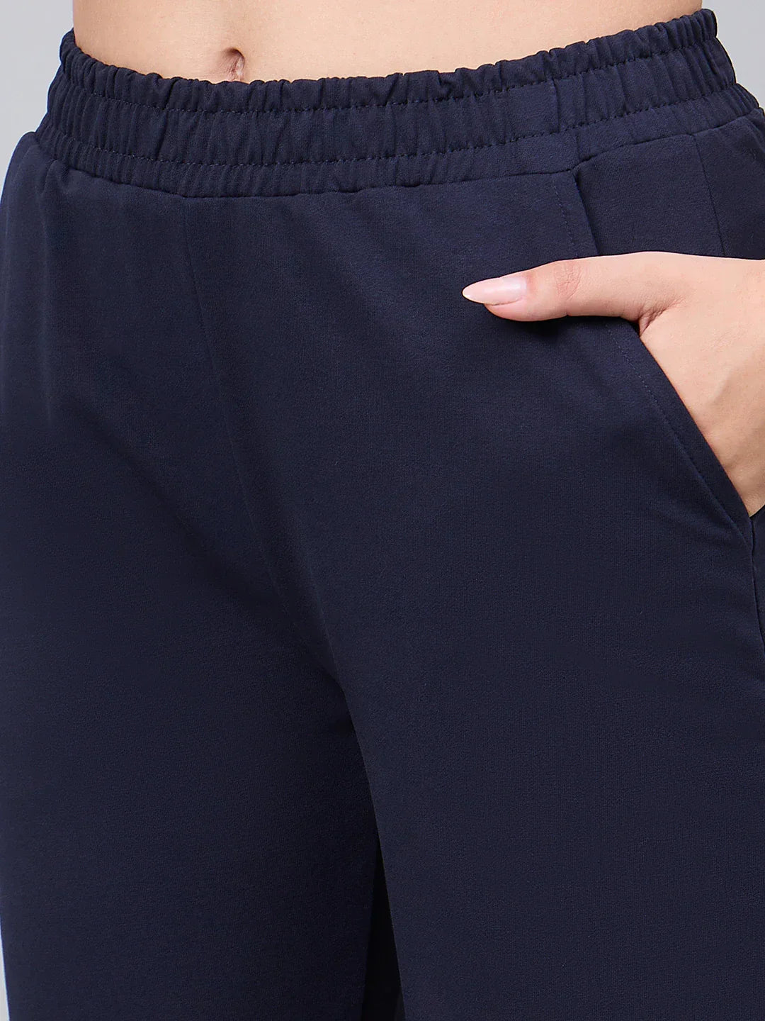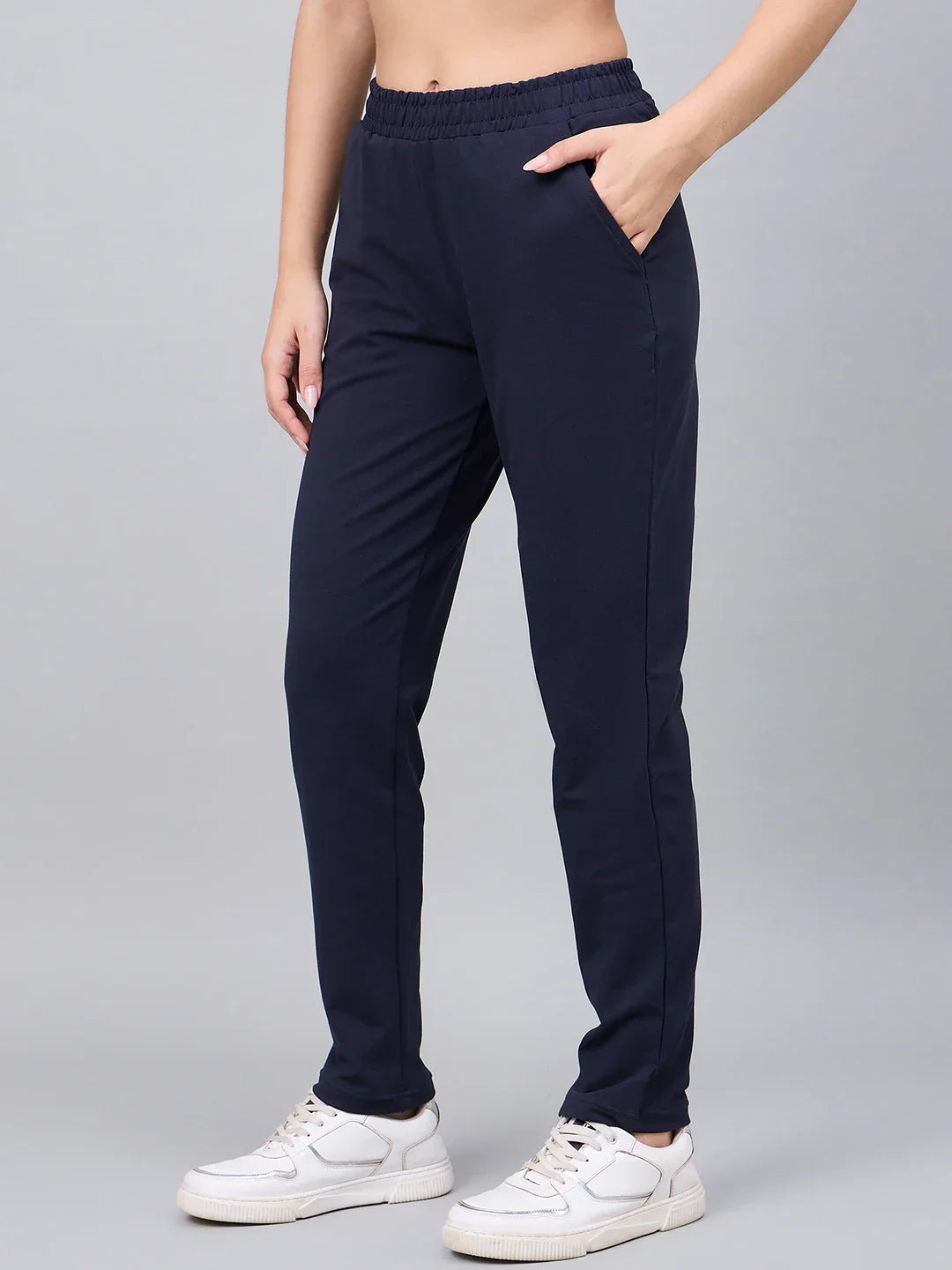 Women’s Navy Blue Cotton Stretchable Slim Fit Trackpants – High Waist Straight Leg Casual & Travel Wear Pants India
