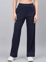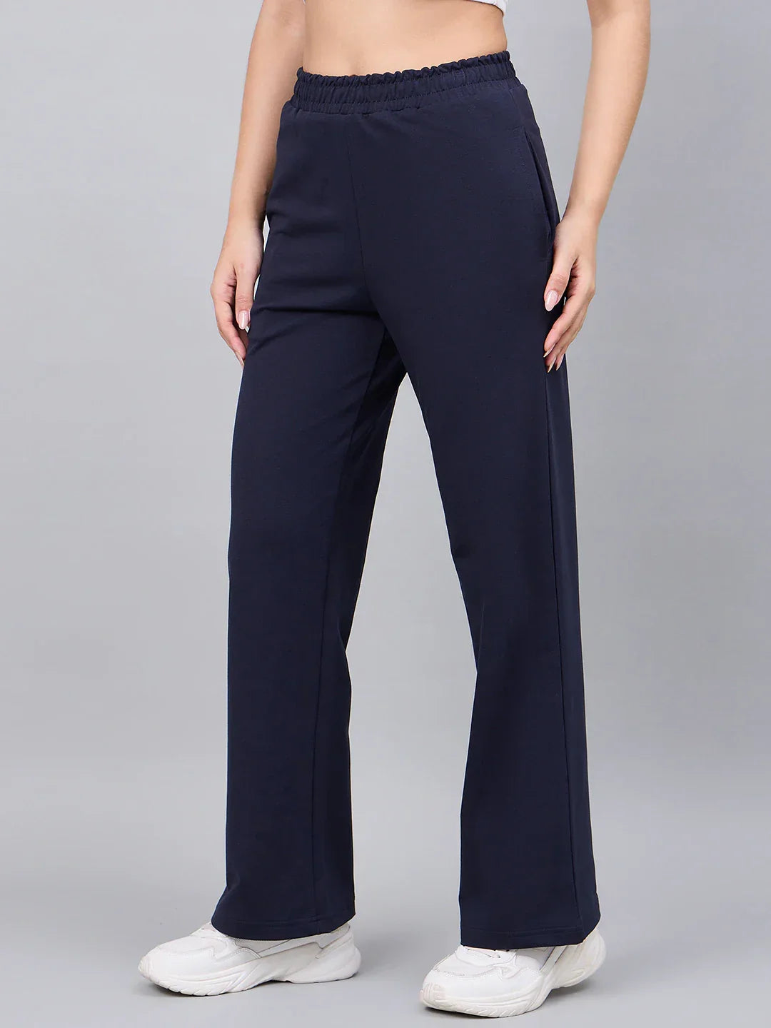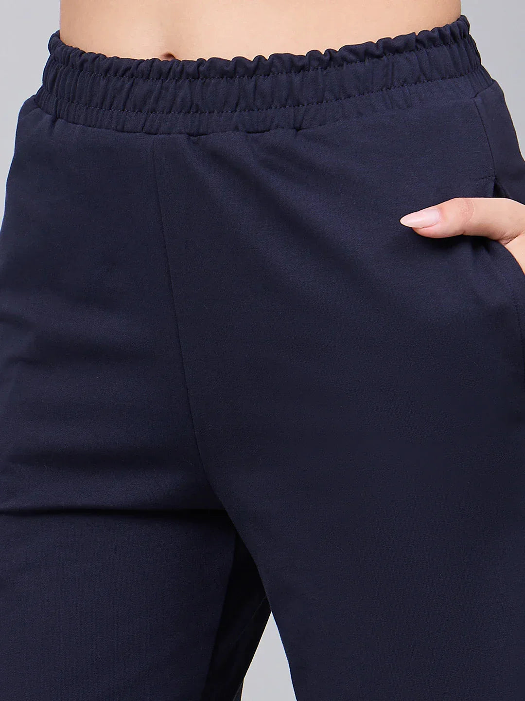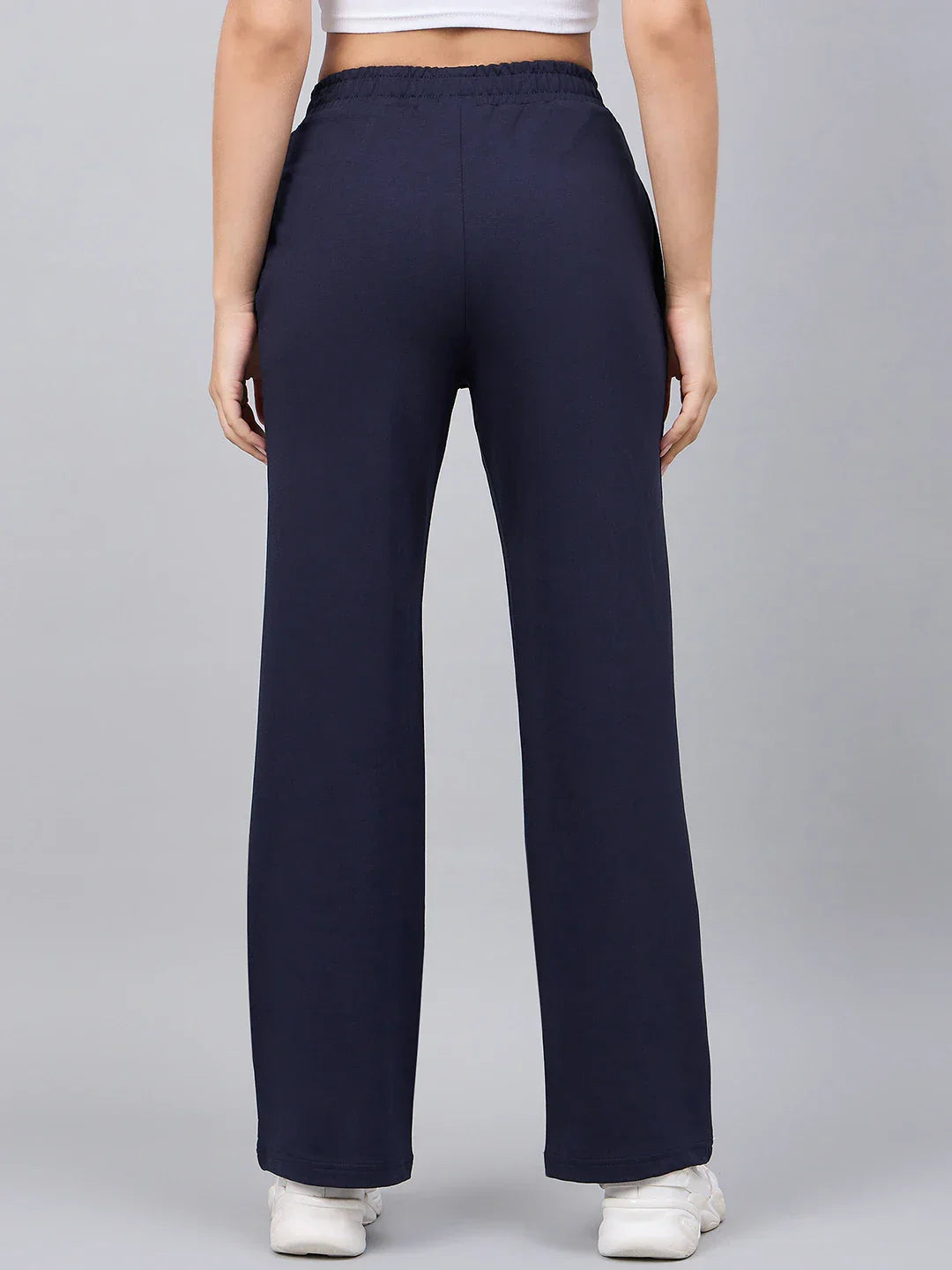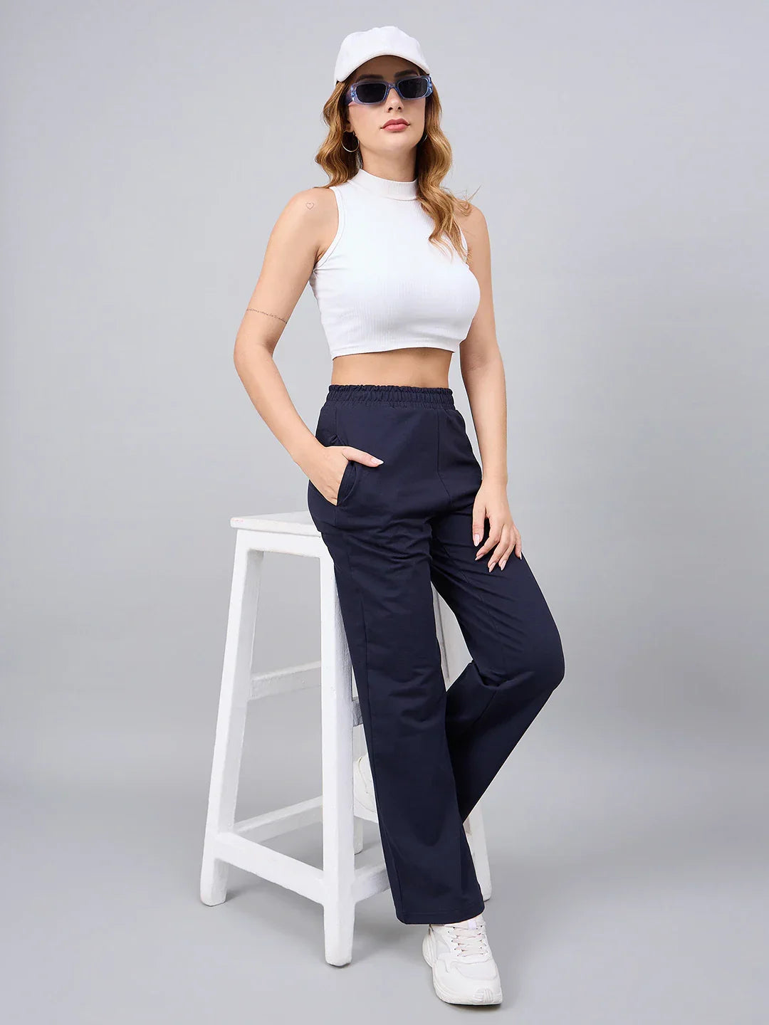 Women’s Navy Blue Cotton Stretchable Trackpants – Straight Fit Slim High Waist Everyday & Travel Pants India