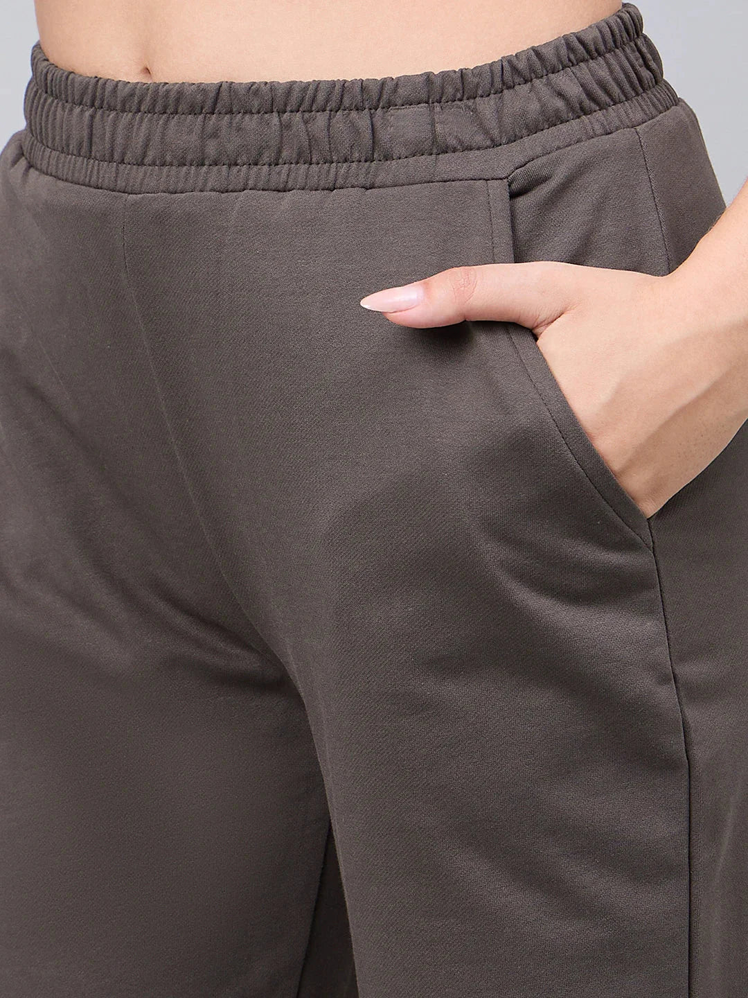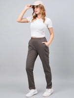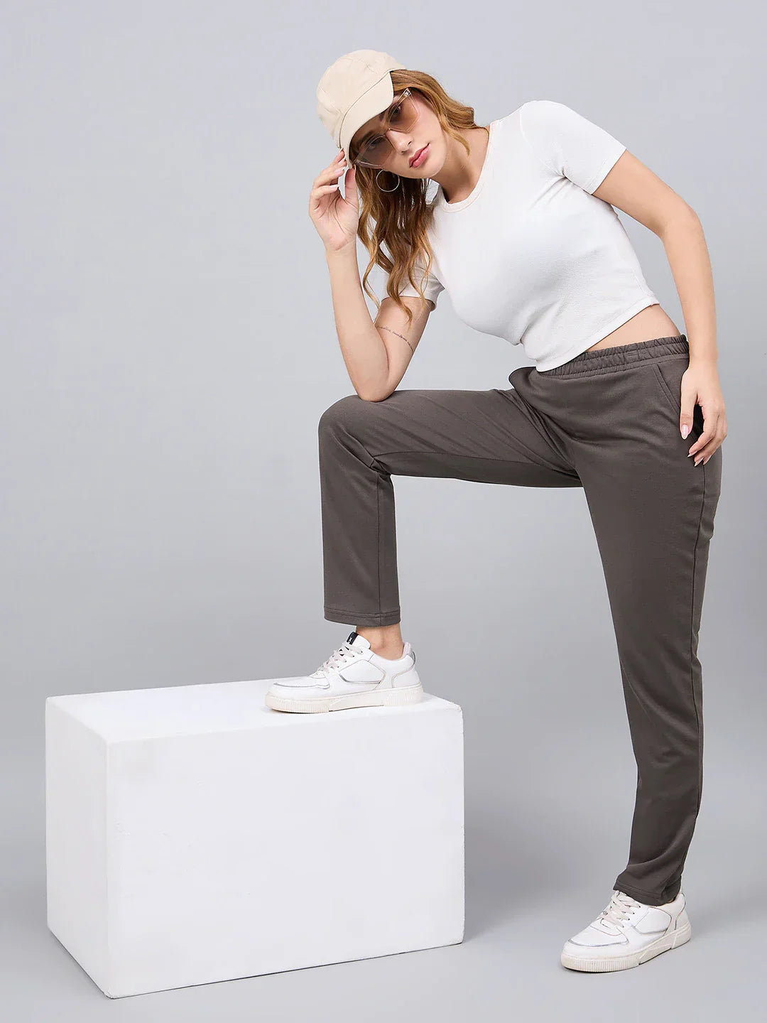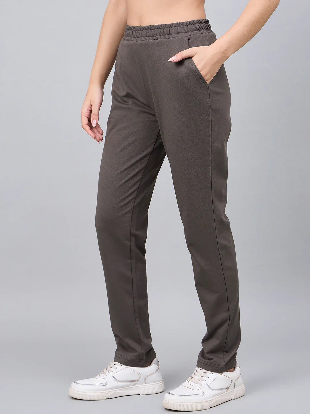 Women’s Olive Green Cotton Stretchable Slim Fit Trackpants – High Waist Straight Leg Casual & Athleisure Pants India