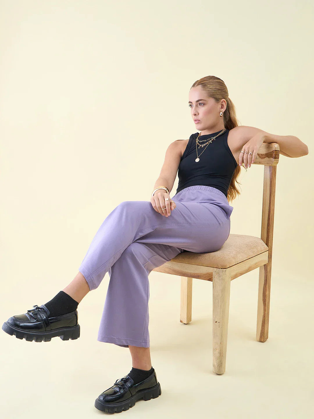 Women’s Violet Cotton Stretchable Trackpants – High Waist Slim Fit Casual & Lounge Wear Bottoms India